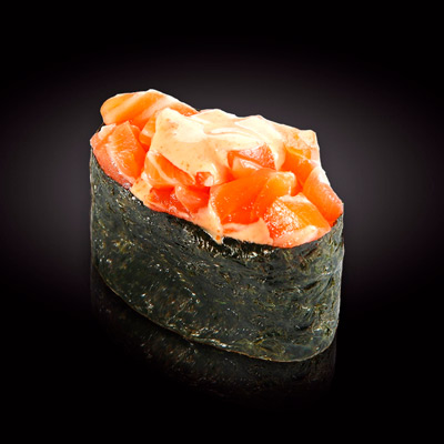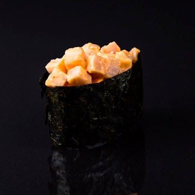 Состав: рис, лосось, спайси соус, нори. Вес: 40 гр.