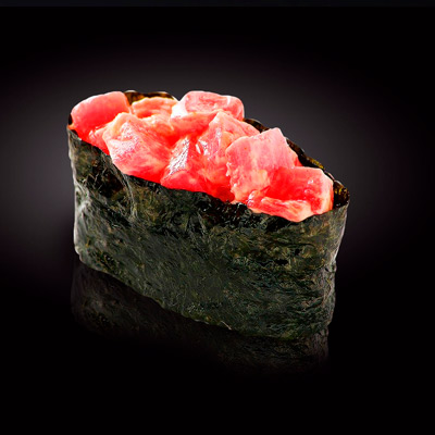 Состав: рис, тунец, сыр сливочный, нори. Вес: 40 гр.